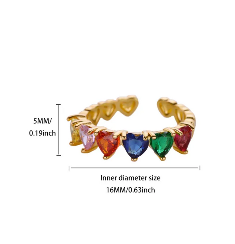 The All My Hearts Ring features a row of heart-shaped stones in vibrant, feel-good hues, set on a sleek gold vermeil band. Each heart tells a little love story, perfect for gifting, stacking, or treating yourself (because self-love counts too).
