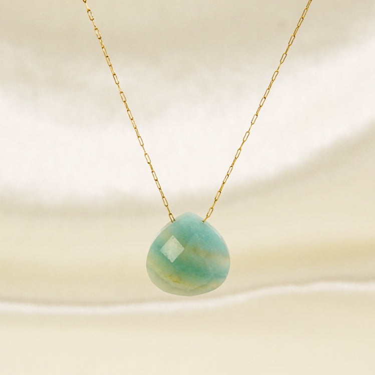 A soft blue aquamarine stone on a delicate chain, this necklace switches your glow mode on with effortless elegance.