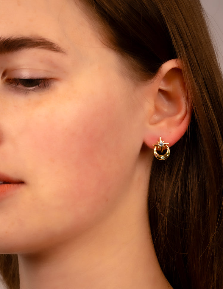 Playful and cosmic, this mismatched pair features a sparkling star and a gem-kissed crescent moon, adding just the right dose of stardust and whimsy to your look.
