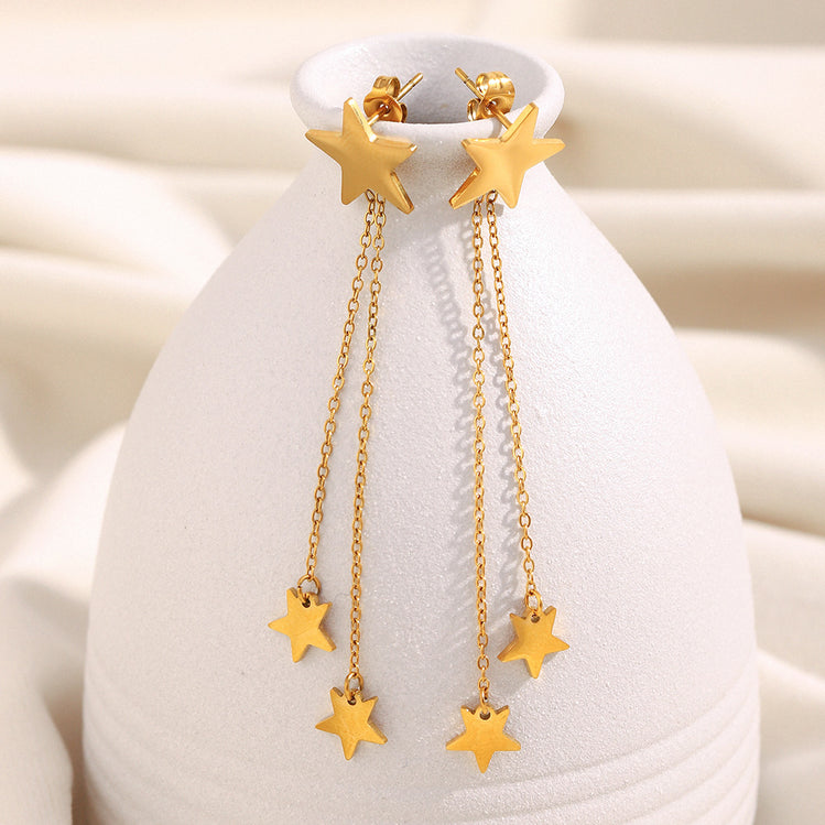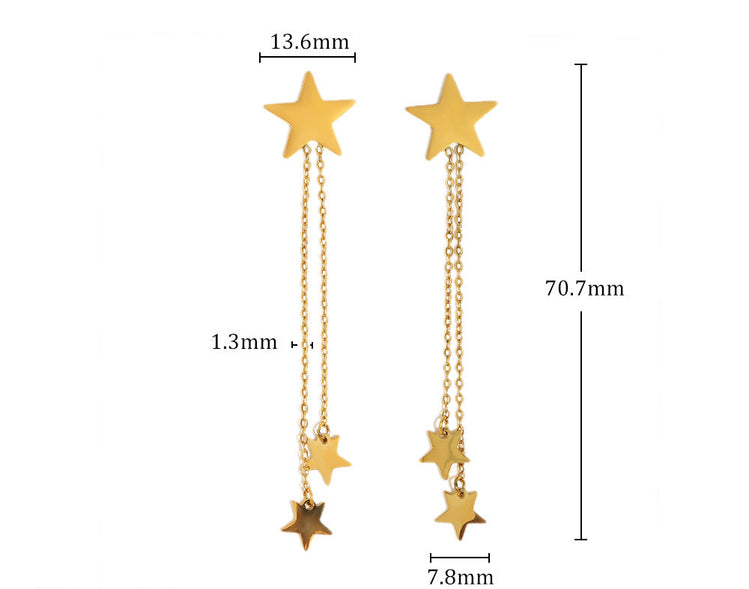 Meet the earrings that refuse to stay still. These playful drop earrings feature cascading chains with shiny charms that dance every time you do. Light, swishy, and full of attitude, perfect for coffee dates, dance floors, and everything in between. Waterproof, lightweight, and made for main-character moments.