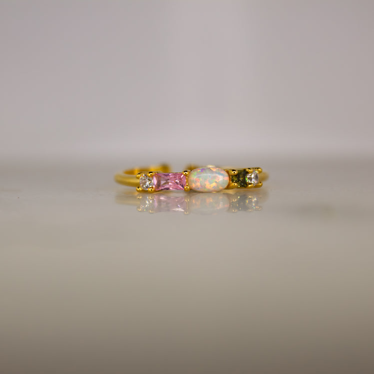 A little opal, a dash of sparkle, and a whole lot of charm. This flirty open band loves to catch the light (and compliments)!