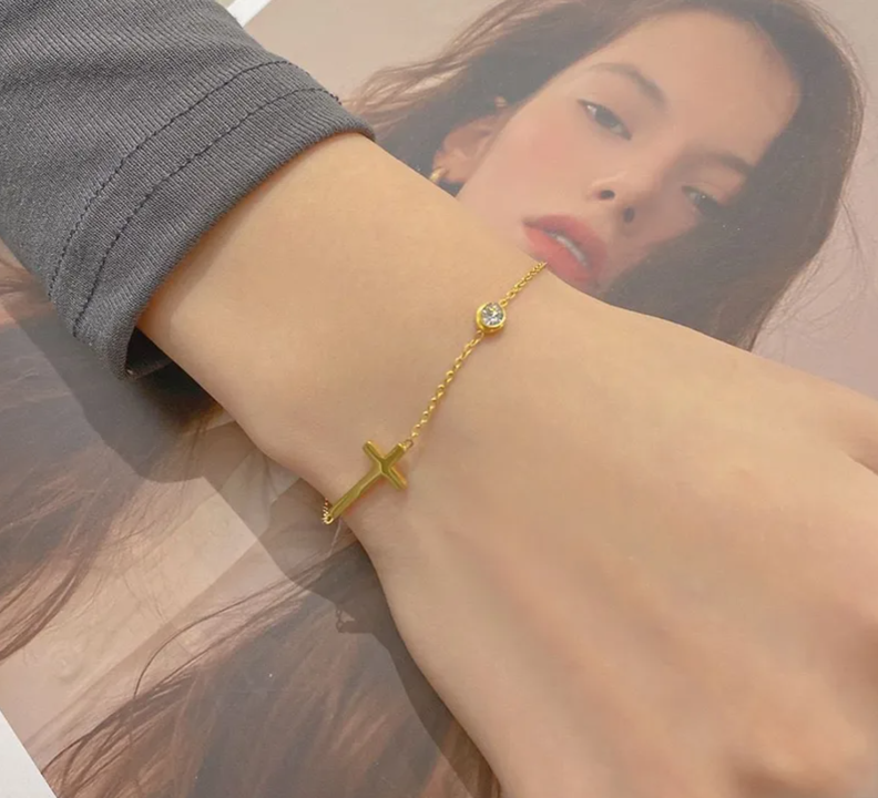 A fine gold chain detailed with a sleek cross motif and a subtle crystal accent. The Guiding Light Bracelet is delicate yet meaningful — designed for everyday wear, whether worn solo or paired with its matching necklace.