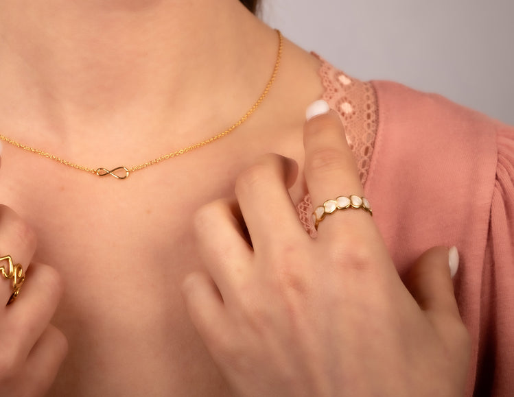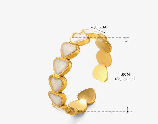 A ring full of love and light, the Heartbeat Ring features a string of glossy white/black enamel hearts wrapped around a glowing gold-tone band. Tarnish-resistant and adjustable, it's a sweet statement piece that beats to the rhythm of your style.