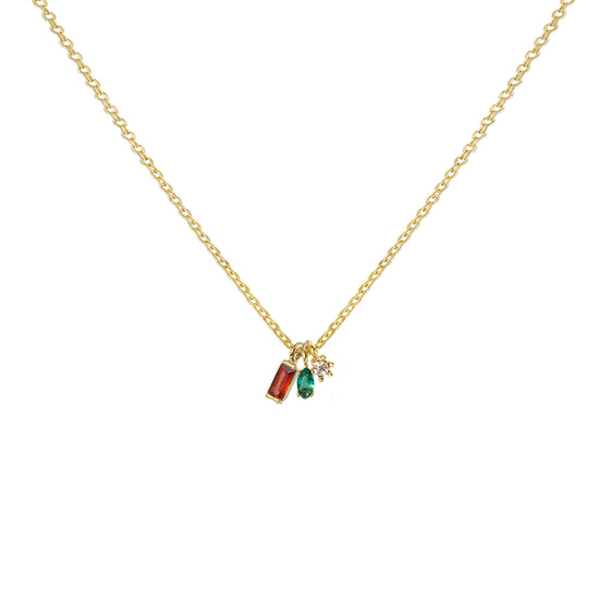 A merry little sparkle for every neckline! The Holiday Spark Necklace features a trio of glimmering gems: festive red, evergreen, and a touch of clear brilliance — that bring cozy holiday vibes and classy charm to any outfit. Sleek, dainty, and perfectly giftable for the season of sparkle.