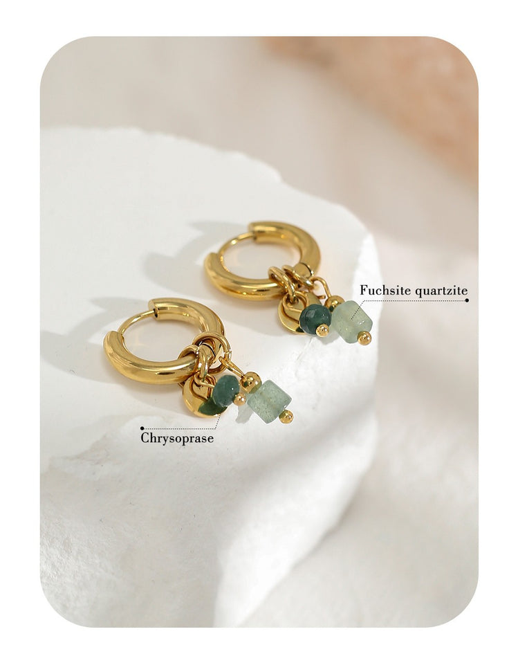 Earthy meets edgy. These gold hoops come adorned with bold green stone charms—and the best part? They’re 3-in-1. Wear them with all the drops, mix and match, or go sleek and charm-free. One pair, endless style moods.