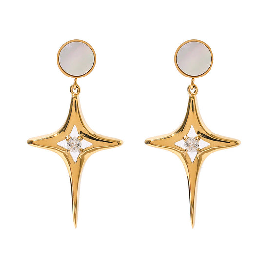 - Four Pointed Stars with Zircon and Shell inlay ear studs