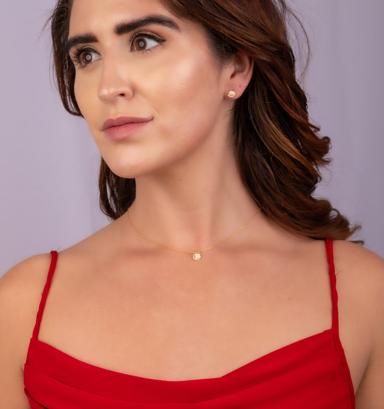 A dreamy opal wrapped in a swirl of sparkling stones, this necklace twirls light and color with every move you make.