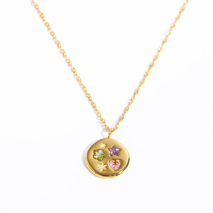 A gleaming gold disc sprinkled with colorful stones, this Waterproof necklace is like a little party you can wear every day.