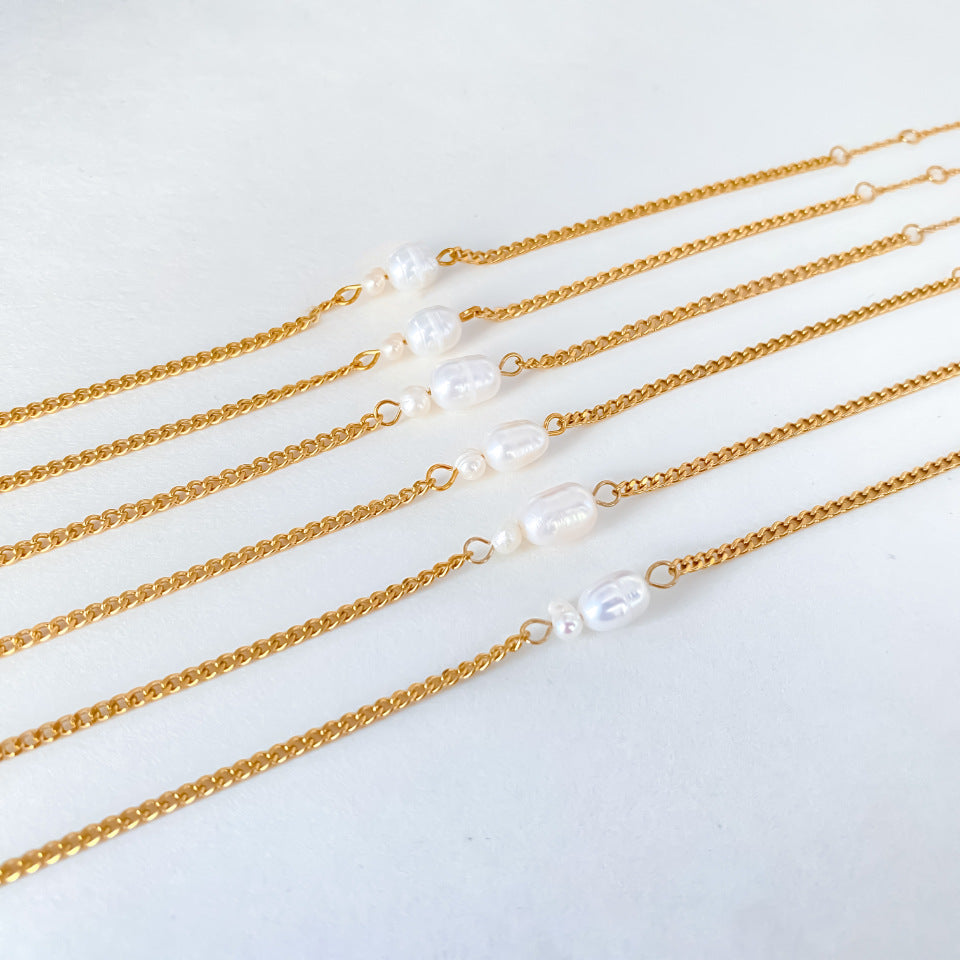 Featuring a duo of freshwater pearls on a fine gold chain, this delicate bracelet adds a soft, understated finish to everyday styling.