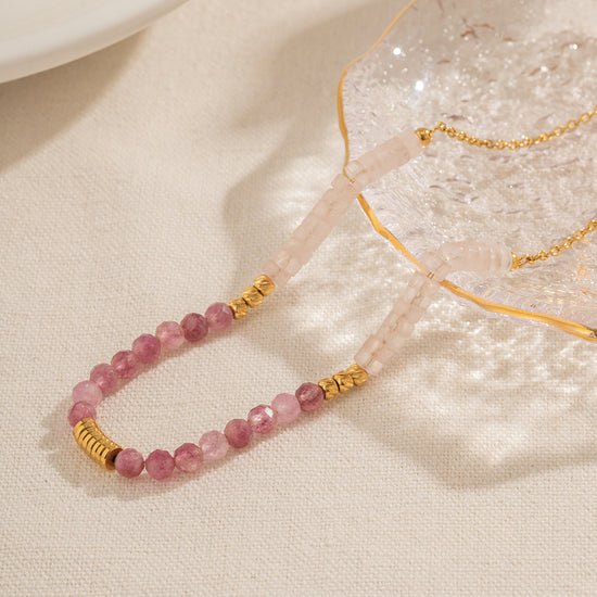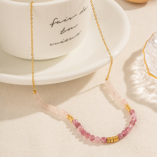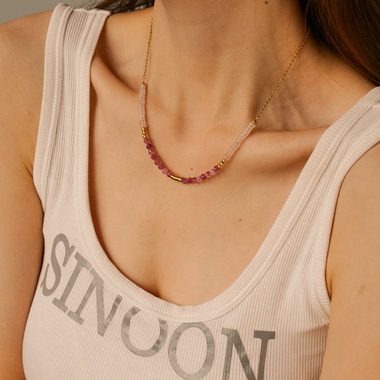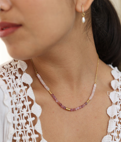 A rich strand of deep red beads, this necklace shimmers with the warm, lively glow of sangria at sunset.