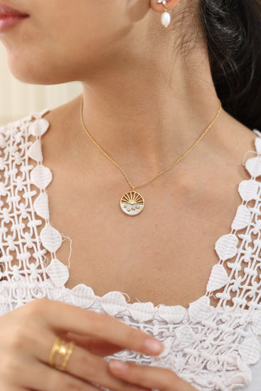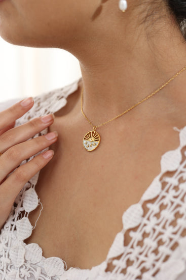 A golden sunrise meets a sky of stars in this dreamy Waterproof necklace, blending warmth and wonder in one celestial charm.
