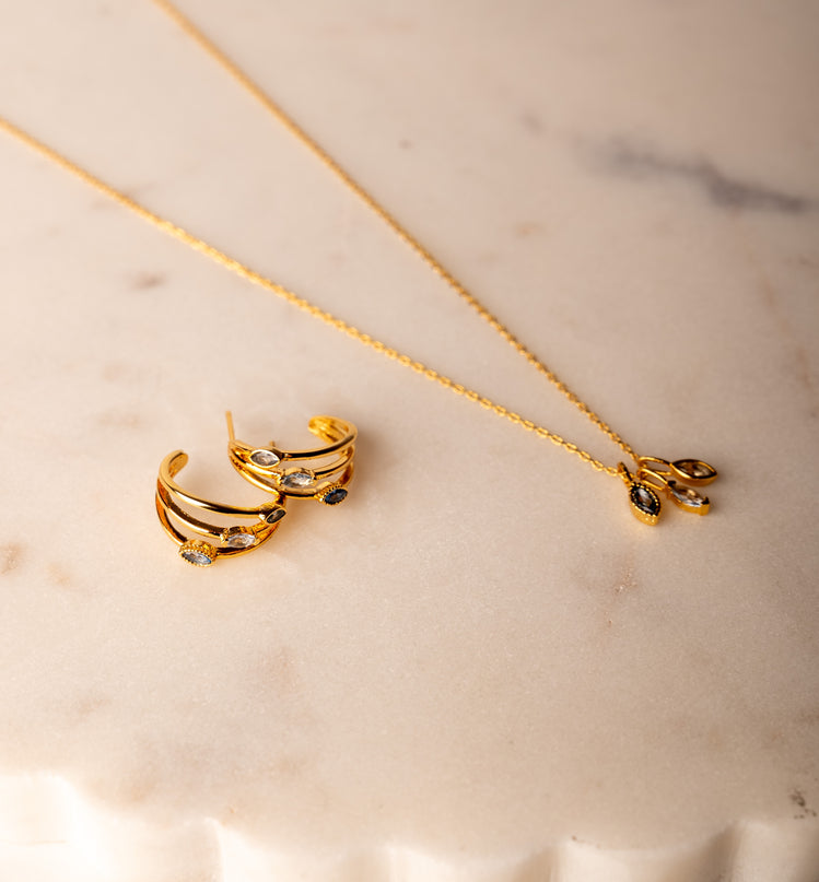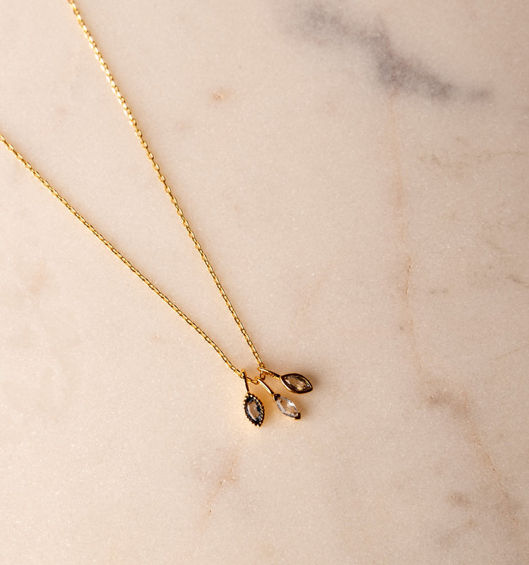 Three sparkling drops dangle in perfect harmony, making this necklace a playful little trio that’s always ready to shine.