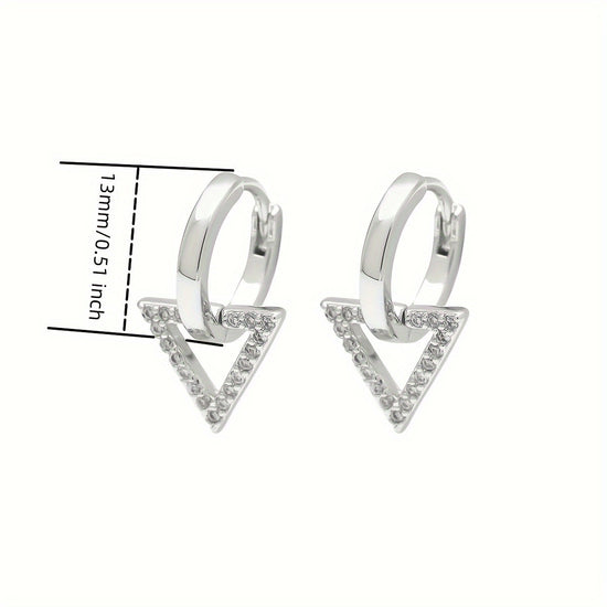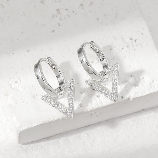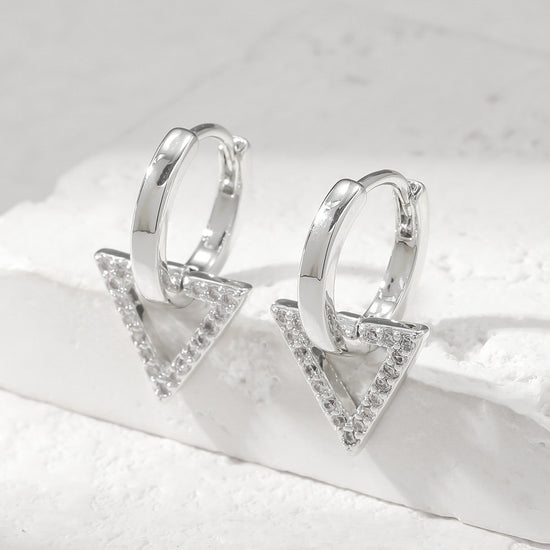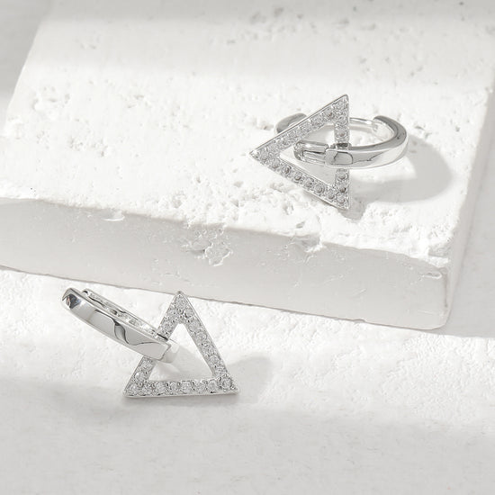 Modern elegance meets playful geometry with these white gold plated hoops featuring shimmering triangle motifs studded with zircons.
