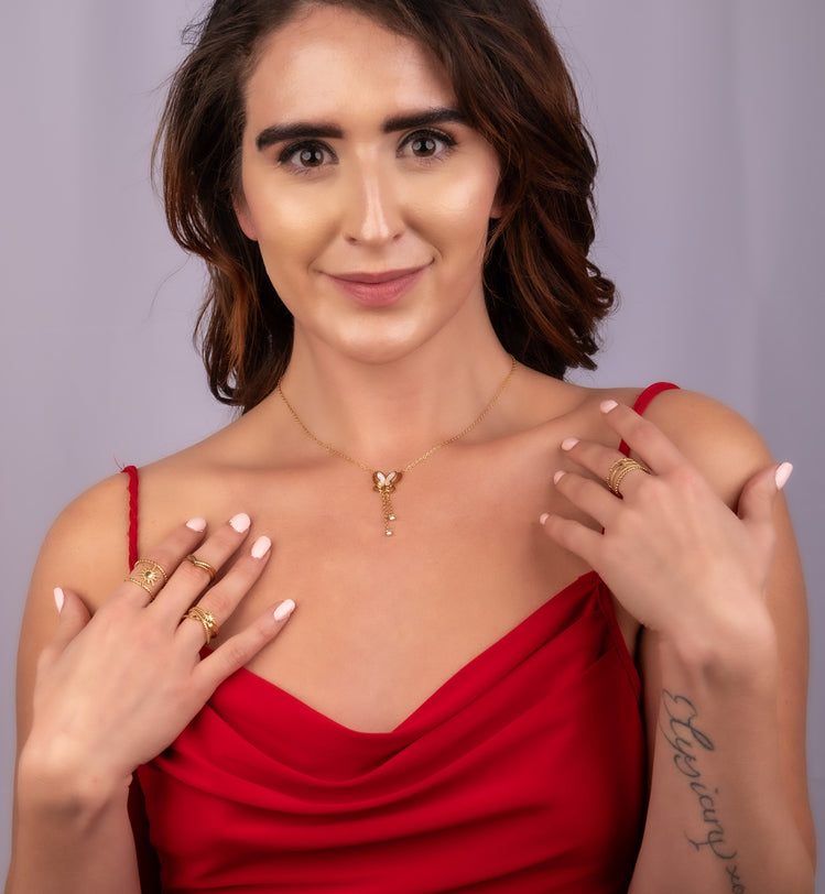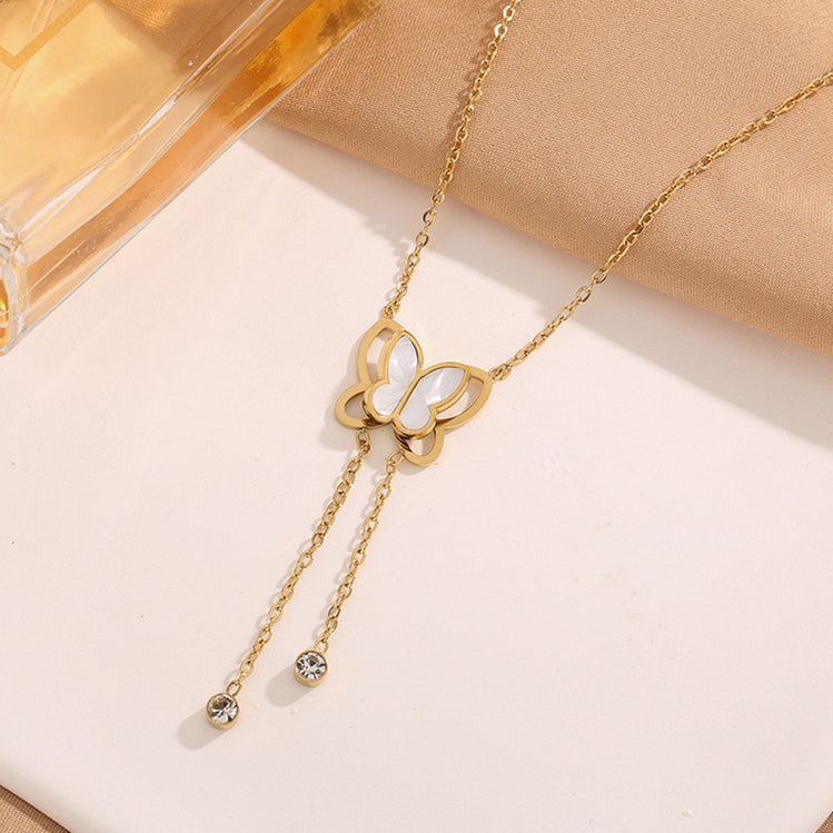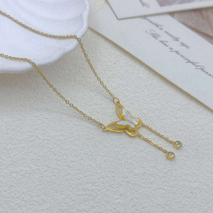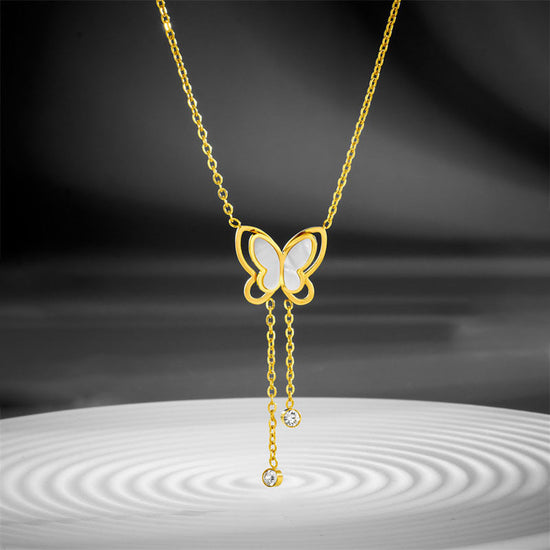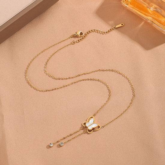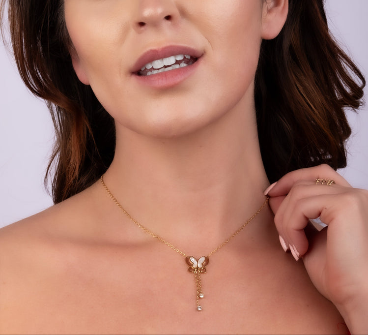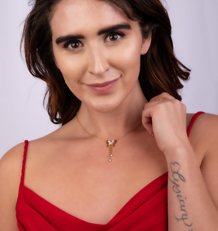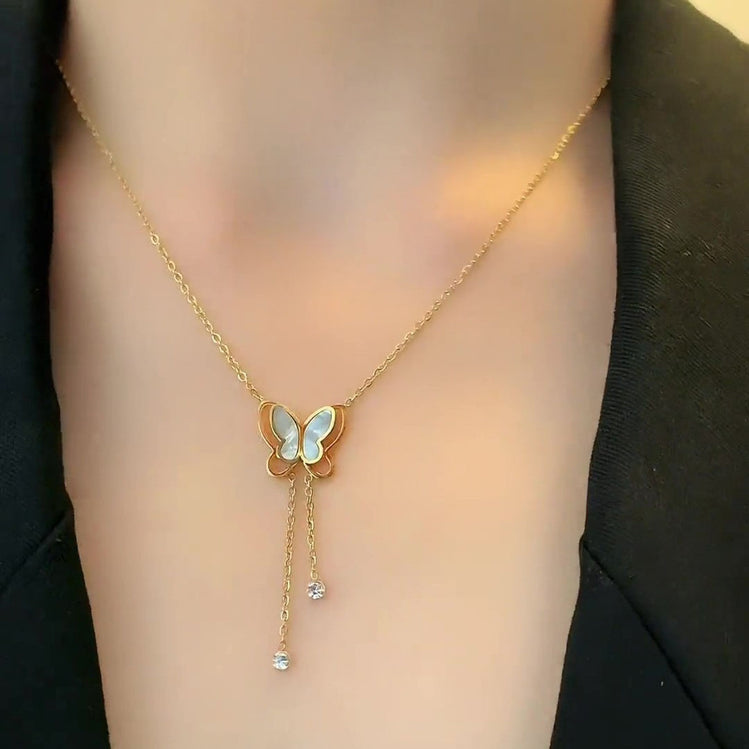 A golden butterfly poised in flight, this Waterproof necklace drapes with graceful ease, bringing a touch of whimsy to your every move.